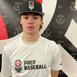 RHP/INF Kash VanHouten (Canton) is yet another high-level prospect from the state’s 2027 class that attended this year’s event. An athletic frame with present strength, VanHouten stands in a 6-foot, 179-pound frame. He works out of a stretch-only delivery on the mound, showing a long arm action with strength, sitting mostly 84-88 mph, while topping out at 88.6 mph with carry through the zone. He turned to a slider that he showed feel to land at the bottom of the zone, and a change-up with clear fade, sitting 76-80 mph. He began the showcase running a 6.96 60 time, a significant improvement since his last showing in the winter. The right-handed hitter displayed a quick bat (avg. 72.4 mph), producing a max exit velocity of 93.9 mph and a max batted distance of 344 feet during batting practice. He remains an athletic defender with clean actions up the middle, including the top infield velocity of the event (91 mph).