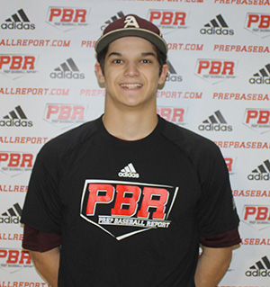 10.16.16 - 6-foot, 170-pound left-handed hitting catcher with a strong frame. At the plate hits from a balanced setup, hand drop load with a short heel lift stride. Opposite field hitter with late rhythm. Showed strength thru contact with 85 mph exit velocity from a tee. Ran the 60 at 7.34. Defensively has a short arm action from a ¾ arm slot. Tall receiver in drills with quick footwork. Popped 2.18-2.26 and threw 77 mph from the crouch. Blocks pitches well.