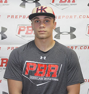 1.18.15 - 6-foot, 200-pound athletic and strong right-handed hitting catcher hits from a balanced setup, short stride, closes off shoulders at load, right-center/up the middle approach with line drives during batting practice, struggles to pull, 78 mph exit velocity off the tee. Defensively, pop times ranged from 2.16-2.26 down to second, 74 mph from the crouch from high ¾ arm slot, some run on throws to second, average hands receiving. Ran a 7.69 60. On the mound, fastball sat from 74-78 mph from long, high ¾, sweepy arm slot, with arm side run. Impressed throwing three pitches for strikes, including 62-64 mph curveball with 11/5 shape, gradual break and 69-73 mph changeup with arm side run.