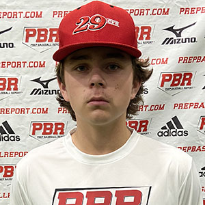 5-foot-9, 180-pound right-handed-hitting catcher. Strong, physical build. Started behind the plate for 29ers on Friday night. Slightly open balanced setup, short stride with a slight leg kick, slight bat tip during load. Hands separate well, level path through the zone. Patient approach at the plate, worked a full-count walk in his first at-bat. Adept blocker behind the plate, squares himself up with the ball. Pop times ranged between 2.32-2.44, threw a runner out in game. Quick, clean transfer, fluid footwork, arm has carry to it. Vocal on the field, showed the ability to handle a staff.