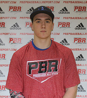 1.27.18 - 6-foot-1, 205-pound, physical, wide-shouldered, two-way prospect. At the plate, right-handed hitter, advanced bat strength for age; 98 mph exit velocity from a tee. Starts from a wide, balanced setup, leg-lift timing trigger and fluid rhythm. Swings with intent, present bat speed and ball jumps off his bat. Long bat path, gap-to-gap approach, flashed pull power at times. On the infield, profiles as a third baseman. Steady hands, clean release, throws out of a high ¾ slot, accurate throws, carry across the diamond at 84 mph. 7.04 runner in the 60, laser-timed. On the mound, right-handed pitcher, uptempo delivery, some effort and works on-line. Quick arm action, high ¾ slot. Fastball, thrown for strikes, mostly straight, 83-86 mph. Slider, looks like a cutter at times, short break, 10/4 shape, sharp spin and thrown aggressively at 76-79 mph. Changeup, mostly straight, 76-80 mph.