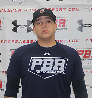 2/22/15- 5-foot-9, 200-pound, right-handed hitting catcher. In the field has a short arm action from an over the top arm slot. Accurate throws with fluid footwork and a clean exchange. High set up receiving. Popped 2.04-2.14 and threw 71 mph from the crouch. At the plate hits from an open spread out, knee to knee stance. Line drive, gap to gap hitter with short, uphill swing path. Fluid rhythm with a fast bat. Showed strength thru contact with 87 mph exit velocity from a tee. Home to first at 4.76.
