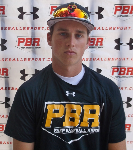 1.17.16 - 6-foot-1, 170-pound two-way player, strong build, broad shouldered. Tall and fall type delivery on the mound, regular effort, squared landing, works on line. Short quick arm action, over the top slot. Fastball flashed late cut, 77-80 mph. 12/6 curveball 69-71 mph, showed good spin. Changeup is firm, 72-74 mph, near fastball arm speed, thrown aggressively. Right-handed hitter, balanced stance, leg lift stride, average balance. Quick/strong hands, ball jumped swinging a wood bat, excellent bat speed through the zone, 81 mph exit velocity from the tee. Defensively arm played over the top, firm at times, 76 mph across the diamond. Sets feet up well to play through the baseball, occasionally lays tall, hands work well. 7.91 runner in the 60.