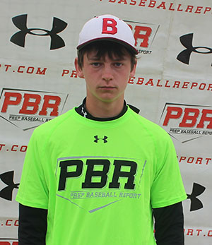10.4.15 - 5-foot-11, 145-pound left handed two-way player, lean loose build with some projection. Delivery is athletic and repeatable, good tempo and rhythm. Long loose arm action, clean arm projects, flashes arm speed. Fastball sat 76-77 mph, showed feel for the pitch, slight arm side action. Slider played at 66-68 mph, slight lateral action. Also flashed changeup at 63-64 mph. Good projection on the mound, solid follow in the 2018 class. Offensively hits from the left side, slight open stance, longer stride. Level path, cuts through the zone, line drive type approach. 81 mph exit velocity from the tee. In the outfield showed similar arm action to that on the mound, topped at 76 mph from the crowhop. Played through the baseball, good exchange/transfer of the baseball. 4.57 runner down the line.