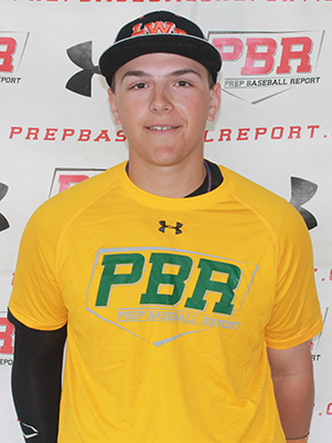 10.18.15 - Strong build 5-foot-11, 205-pound right-handed hitting first baseman. Wide, slightly open setup and pre-pitch load. Short, leg-kick trigger, short bat path through the hitting zone and average bat speed. Registered an exit velocity of 82 mph. Defensively, moved well around the first base bag for size. Reliable hands and clean exchange. Long arm action, high ¾ slot and clocked at 70 mph across the diamond. Also, ran an 8.14 laser-timed 60.