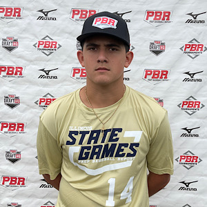 Hit: RHH. Balanced, open setup. Hands set shoulder high. High back elbow. Strong, intentful swing. Level path, advanced bat speed for his age. Peppered hard contact to all fields.