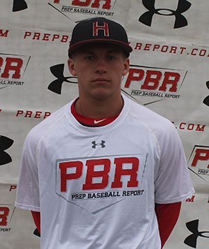 10.4.15 - 5-foot-11, 170-pound outfielder, average frame and build. Defensively showed above average arm strength from the outfield, full arm action from over the top slot, arm played up with accuracy, showed carry on line to target (82 mph). Plays through the baseball standard outfield actions. Right-handed hitter, balanced stance, slightly open setup, regular stride length. Flashed bat speed for his age, path works on uphill plane, lifting contact. 81 mph exit velocity from the tee. Went 2-for-3 in game play with two singles a run scored and an RBI.