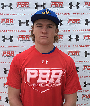 10.10.16 - 6-foot, 170-pound, two-way player. On the mound, right-handed pitcher, in line direction, toe lands closed, finishes athletically. Long, loose arm action from a high ¾ slot. Fastball, thrown for strikes, slight run, sat 78-80 mph. Curveball, maintains fastball arm speed, 72-74 mph. Changeup, mostly straight, 69-72 mph. Offensively, average bat speed, uphill path through the zone; exit velocity registered 80 mph. Tall, narrow setup, short stride. Defensively, long arm action from an over the top to high ¾ slot, flashed accuracy; throws clocked at 80 mph across the diamond. 7.46 runner in the laser timed 60.
