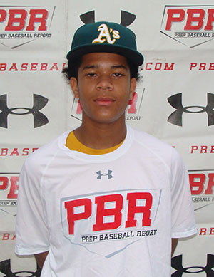 8.21.16 - 6-foot, 160-pound outfield/infielder. Right-handed hitter, slightly open stance, short stride, hands load back. Loose hands on level path, flashed bat speed, 79 mph exit velocity from the tee. Ran a 6.89 in the 60. Defensively, trusts his hands, work soft and clean exchange. Raw foot speed has yet to translate defensively. Feet could arm played long from a high ¾ slot, 83 mph from the outfield, 79 mph across the diamond.