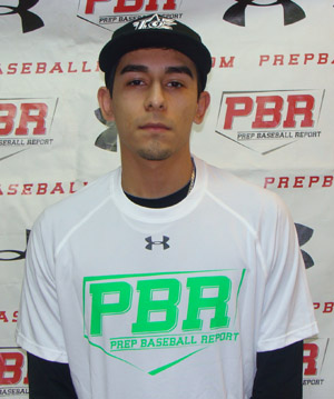 2/17/13 - 5-foot-11, 160-pound two way player. Possesses a lively arm. Delivery shows some rhythm, drop and drive style delivery, back side tends to collapse. Arm works well, ¾ to high ¾ arm slot, quick arm, gets underneath the baseball at times. Fastball has run, erratic life, 85-87 mph. Curveball has 11/5 shape, gradual action, thrown with similar arm speed to fastball, has the ability to throw for strikes, 67-69 mph. Change up has control, thrown with fastball arm speed, 71-74 mph. Defensively uses a long arm action from the outfield, long transfer and release, arm works at 81 mph. Offensively hits from open stance, good setup. Bat path is short, line drive swing, lacks strength.