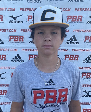 Hit: (RHH) Solid. Starts in an open stance with a small compact load, then uses a toe tap stride. Developing bat speed. Good extension on his finish, loose upward swing. Gap to gap approach.