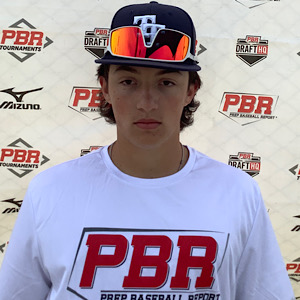 Hit: LHH. Hits out of a tall, slightly open stance. Uses a big leg kick stride with active hands during the load. Big forward move creates momentum into the baseball. Turns the barrel on a slightly uphill path to match plane, bat path is advanced. Shows gap-to-gap strength. One of my favorite swings at the event.