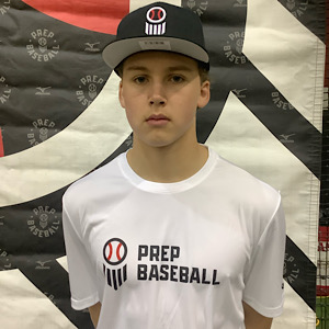 Hit: RHH. Tall setup with hands back in stance. Shoulders work downhill in time with stride. Shows control of the barrel through the zone. Line drive approach hitter.