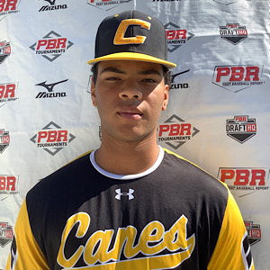 Hit: LHH. Tall setup with loose rhythm in the hands. Rhythm flows to an arm bar load, uses a small leg kick stride. Looser barrel turn that works direct with a high finish. Tons of bat speed in the operation, easy bat strength with more in the tank.