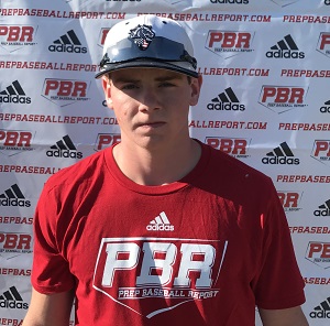 5-foot-11, 185 pound junior outfielder hits with some athleticism and twitch from the right side of the plate, generating some pull side bat speed. Weight starts and stays on the back side to load, front foot small lift to gain separation forward, pushing the hands back, created some separation in swing. Hands lower in load with the barrell flattening out before launch. Average lower half, more in the back side, back hip works stiff at times. Good rhythm and level swing, drove some baseballs pull side with pop. Athletic outfielder, gets to baseball quickly with good route. Fields baseball on left side of body, travels with baseball forward after the catch to release. Long arm swing with high ¾ release. Stayed behind the baseball, delivered accurate throws from OF.
