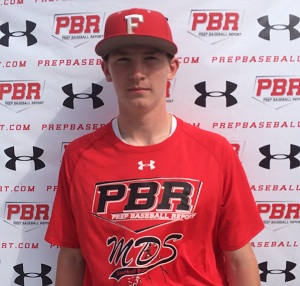6/22/15: A projectable 6-foot-2, 190 pound righty pitches predominately out of the stretch. High leg kick. High ¾ arm arm slot with a long, loose arm action. Smooth rhythm in the delivery with level shoulders. Good line to the plate, athletic finish. Fastball was 82-85 and thrown for a strike. 10/4 breaking ball with late action at 70-71. Arm speed is quick and projects to see a velocity jump in the near future. High follow in the 2018 class.