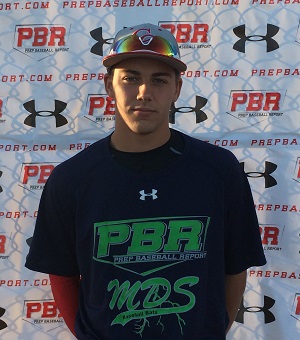 2/21/15; 6-foot, 168 pound Junior showcased average hands with fluid feet in the field. Clean exchange and plays through the ball. Throws from a high ¾ slot, long arm action, up to 85 from the OF with some carry. Ran a 6.93-60. At the plate hits from an athletic, slightly open setup. Loads back, uses a short stride. Low hands. Tendency to dive during the stride. Short path to the baseball. Recorded a high exit velo of 87 mph.