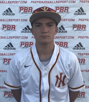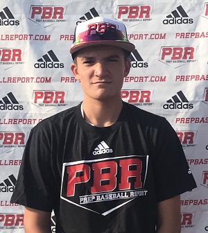 7/24/18: 2022 3B/RHP hits from the right side. Narrow tall setup in the box. Uses quick leg lift as trigger. Bat path is level to slightly uphill through the zone. Showed line drive ability and used the whole field. Posted an exit velo of 78. In the INF played through the baseball, fielded everything out in front. Arm strength across the diamond was 76. On the mound pitches from high arm slot. Arm action is long and loose. Repeats delivery well and stays in line throughout. FB sat 74-77 T78 with occasional life. CB flashed potential at 66-71.