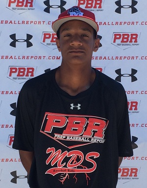 2/26/17: The 6-foot-3, 180 pound outfielder has pure foot speed. Ran a 6.61 laser timed 60yd dash. Previously ran a 6.54 as well. In the box, balanced setup with big leg kick. Lot of movement in load. Lands with heavy front foot. Some opposite field pop. Bat path is long, fast. Explosive lower half. Plays through the ball in the outfield with bounce in his step. Arm strength is above average. Throws topped at 87. Arizona Western JC commit.