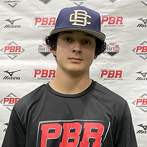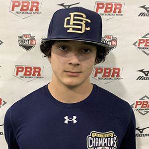 Hit: RHH. Starts with a neutral stance and upright posture. Hands get set at just below shoulder height with a vertical bat angle. Quick load into the lower half and utilizes a short leg kick stride with a rotational backside turn. Uphill bat path and tries to work the ball up in the air. Rotational path with the hands and utilizes a pull side approach. Developing bat speed and hand speed.