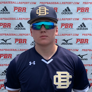 Moore is a 5-foot-10 178-pound right-handed hitting catcher and infielder in Kansas’ 2022 class. He ran a 7.50 60 and a 4.89 home to first. He has an 88 mph exit velocity. At the plate, tall and thin set up, minimal load, attacks ball with in line stride, level through the zone, gap to gap contact, flashes pull side power. Behind the plate, 74 mph positional velocity, 1.98 to 2.19 pop times, slightly staggered in set up, aggressive footwork, replaces feet with momentum to throw, mostly accurate throws with carry. On the infield, 78 mph positional velocity, fields ball in athletic position, smooth footwork to ball, clean transfer, short over the top arm slot, arm works from different slots, clean arm action, accurate throws.