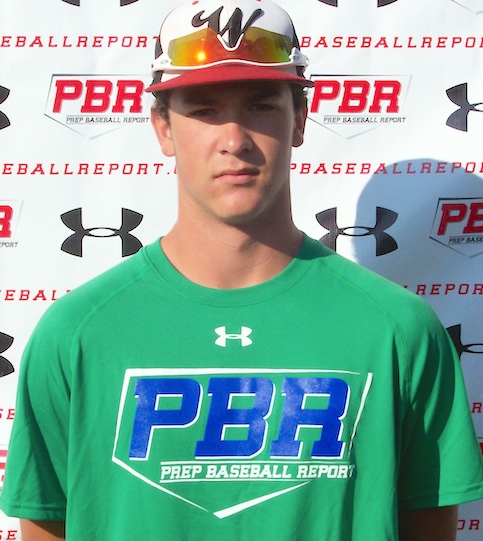 2/16/15 - Hamilton is a right-hand hitting outfielder and right-handed pitcher in the class of 2016. Attends Remington HS in Remington, KS. Class of 2016. Open set-up at the plate, knee turn then strides closed, smooth load, keeps head on ball, works gap-to-gap. 84 mph exit velocity, ran a 4.50 home-to-first. In the outfield fielded the ball cleanly, high three-quarters arm action, 80 mph throwing velocity. On the mound deliberate pace, from pivot to balance point. Lifts hands and vertical knee lift for rhythm. Strides inline, high three-quarters slot, finishes square. Easy, under control delivery with body control. Most fastballs with cutting action glove side, 80-82 mph, high percentage of strikes. Controllable 12/6 curveball, 66-68 mph. Change-up, 71-73.