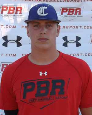 6/16/15 - 6-foot-4, 220-pound right-handed hitter hits from a balanced stance, short stride, strong frame creates some bat speed, 86 mph exit velocity, swing generates some lift with pull-side power, ran 4.83 down the line, went 0-for-3 in game play. Showed 75 mph arm strength behind the plate, quick transfer and release, footwork stays online, pop times ranged from 1.94-2.02 with most throws accurate to the second base bag.