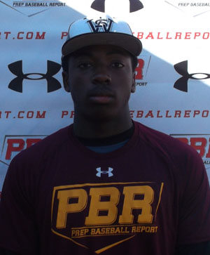 8/2/15 - 6-foot-2, 190-pound left-handed hitter hits from a balanced stance with a long stride, line drive type hitter with level swing path, lacks extension and finish in swing, 70 mph exit velocity off the tee, ran a 6.91 60-yard dash. Plays through the ball in the outfield, occasional two-handed approach, showed 81 mph arm strength from a short high-3/4 release, accurate throws to the third base bag. Athletic prospect with raw baseball skills, speed plays well from the left side of the plate.