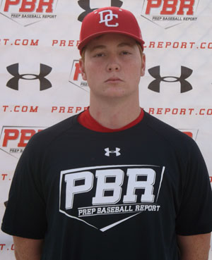 12/15/13 - 6-foot-5, 213-pound prospect, average hands, showed improved arm across the infield at 77 mph. At the plate, hits from a wide base with slight load and no stride, good balance throughout, showed improved lower half that generates good bat speed, consistently squared the ball up in his round with some pop, has some power potential, ran an improved 4.94 home to first base time (-.13 from previous event), 85 mph exit velocity off the tee (has been up to 90 previously). On the mound, uses long arm action through a high ¾ arm slot, fastball sat 78-80 touching 81 with some slight arm-side run, curveball has shown steady improvement at each event he has attended at 69-70 mph with sharp 11/5 action, good command of curveball, throws changeup with good arm action at 75-76 mph with some run and sink.