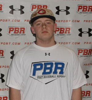 2/16/14 - 5-foot-9, 191-pound prospect, strong lower half, shows good blocking skills, footwork is quick but drifts consistently into right side batters box, quick transfer and release, showed 72 mph arm strength from the crouch, pop times ranged from 1.99-2.08, also participated as a 3B, showed average body control with accurate 75 mph arm across the infield. At the plate, hits from a balanced setup, uses a short stride, balance is good throughout, incorporates lower half, short path to the ball, line drive type hitter should continue to develop some power, showed above average bat speed for age with 83 mph tee exit velocity, ran 7.73 60 yard dash, 2017 prospect to follow.