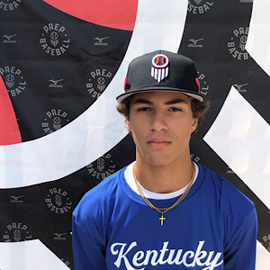 Hit: (RHH) Starts in a balanced quiet stance with a controlled load, then uses a quick stride. Quick bat speed. High finish, level swing.