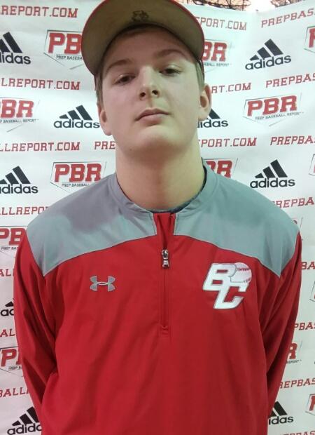 On the mound works out of high 3/4 arm slot. There was intermittent difficulty in repeating delivery. FB sat 68-69, CB 52-53 with 11-5 shape and rolling action. CH at 62-64 was thrown with solid sell. Overall young player whose physicality projects to upside.