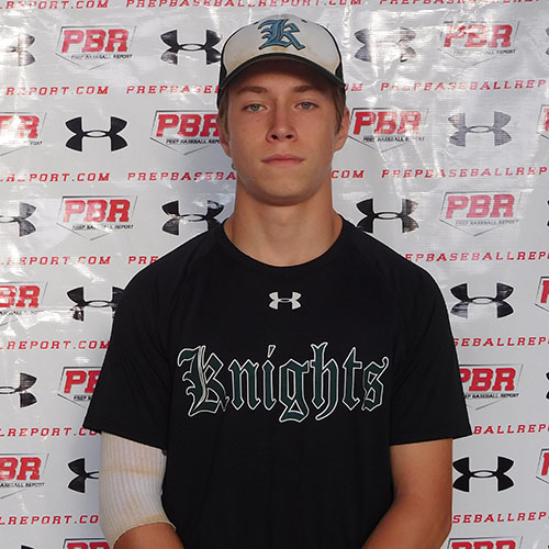 1/21/18 Medium 6-foot-1, 175-pound frame with room to continue to fill. Right-handed hitter starting from balanced, athletic setup with big, loose rhythm. Works back with knee-to-knee load, short stride landing balanced. Right field contact with rotational path, working uphill through contact, posted an exit velocity of 81 mph. Catcher that sits high in setup with average hands receiving, clean exchange and fundamental footwork. Short arm stroke with elbow dominate action into a high-3/4 release with regular effort, recorded a pop time ranging 2.03-2.13 and a positional velocity of 73 mph from crouch. Ran a 7.72 60-yard dash.