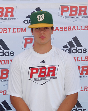 5/20/17 Thick 5-foot-11, 207-pound frame. Right-handed hitter that hits from tall, open, balanced setup, loading with leg lift and slight arm bar. Gap-to-gap type approach with slight uphill path, early rhythm and solid bat speed, produced exit velocity of 82 mph. Catcher with developing hands and footwork with slow exchanges. Long arm action into high-¾ release with some accuracy on throws and developing arm strength, recording a positional velocity of 67 mph; pop time of 2.15-2.21. Right-handed pitcher throwing from high-3/4 release, with solid balance, some effort and looseness in arm action. Developing rhythm with slight uphill shoulders, landing open and finishing athletically. Fastball sat 70-71 mph with slight arm side run and developing command. Breaking ball showed 11/5-shape with gradual action and near fastball arm speed at 62-63 mph.