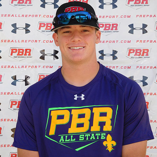 Louisiana State recruit, currently ranked No. 3 in Louisiana’s 2018 class, No. 99 Overall. Strong 5-foot-9, 180-pound frame, defined strength in wrists, powerful lower half. Explosive athlete that posted a 6.58 60-yard dash. Quality defender with average hands, fluid footwork, clean exchange and plays through balls athletically. Short, loose arm action into high-3/4 release with accuracy and carry on throws that produced a positional velocity of 81 mph. Right-handed hitter that hits from balanced setup, smooth load, short stride, explosive lower half and quality balance. Line-drive, gap to gap type hitter with fluid rhythm, level path and explosive bat speed that produced an exit velocity of 95 mph.