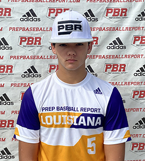 Average 5-foot-10, 175-pound frame with projection and some physicality in frame. Left-handed hitter hits from a wide, slightly closed stance with hands held high. Simple load into back knee creating uphill shoulder tilt while maintaining quality balance. Hands load from high to around the back shoulder into a flat barreled swing with an on plane path and quality extension through contact. Nice left-handed strong with average bat speed producing an exit velocity of 92 mph. Behind the dish, works form a wide base with average receiving skills. Exchanges were clean and the baseball really jumps out of his hand as he posted a 2.10-2.15 pop time and a 76 mph positional velocity form behind the plate. Developing athlete. Posted a 7.40 60-yard dash time.