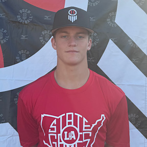 Hit: RHH. Upright and balanced set-up, gets front foot down early with a simple load and stride. Strong top hand takes a direct path to contact with level extension and a two-handed finish, showed some bat speed and pop to the pull-side gap, but was still able to drive the ball the other way. Could use lower-half a little more to generate even more power. 67.9 mph bat speed with 15 G’s of rotational acceleration.