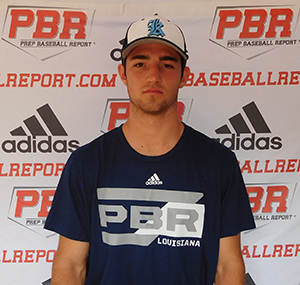 7/24/18 Currently ranked No. 63 in Louisiana’s 2020 class. Athletic 6-foot-2, 178-pounds with lean, wiry build and room to add strength. Right-handed pitcher, shows a long, clean arm action into high-3/4 release with quick arm speed and regular effort. Delivery is athletic with solid direction and fluid rhythm. Pitched 80-83 mph, topping at 84 mph with fastball showing solid feel for the zone and occasional late life. Breaking ball showed 11/5 shape with solid spin and depth at 65-69 mph. Solid defender that showed quality actions with quick, fluid footwork. Short arm action into high-3/4 release with accuracy and carry on throws that produced a positional velocity 88 mph from outfield. Right-handed hitter starting from tall, relaxed setup with looseness in hands. Smooth, simple rhythm working into balanced hitting position. Short path into uphill finish that produced an exit velocity 77 mph. Showed solid athleticism posting a 7.26 60-yard dash.