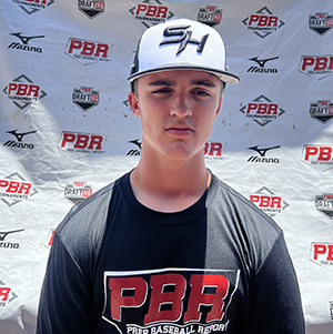 Hits: RHH. Tall and slightly open stance with hands held high, uses a smaller leg lift load and stride Works down to contact with uphill extension and a on-handed finish, repeats swing, stays balanced, showed ability to hit the ball to the opposite field well