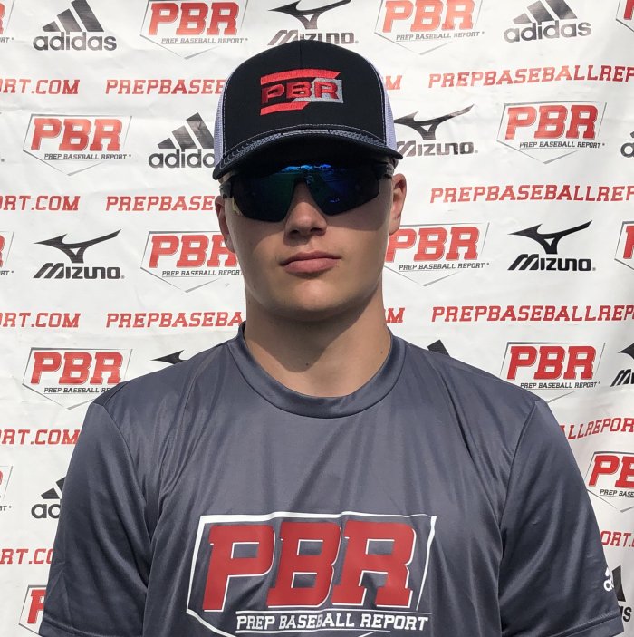 5-foot-11, 165-pound right-handed pitcher and left-handed hitting outfielder. Ran a 7.43 sixty at the event. The approach in the outfield is online and athletic, he threw 74 mph during the outfield portion of the workout. The bat has an exit velocity of 87 mph. The setup is even in base and he uses a small pick up and put down of the front foot as the ball approaches the hitting zone. The hands are thrown to the ball and to contact. The path is long and strong. On the mound, the fastball sat 74 -76 mph. The spin pitch is 69-70 mph and big in shape. The changeup is a developing pitch. The delivery is online with the feet and above 3/4 in slot. The wrist is wrapped on the backside on his arm swing. The direction to the plate is rotational and he spins off the target.