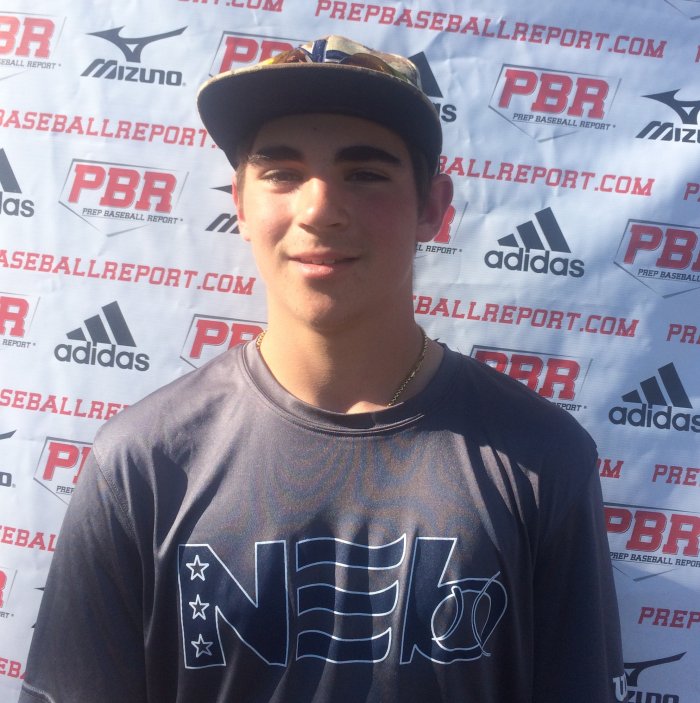 5-foot-9, 150-pound left-handed hitting outfielder. Ran a 4.75 down the line on his dig to first base. The approach in the outfield is aggressive and on time. The athleticsm is solid and he projects more as a corner outfielder. Threw 77 mph from right field. The bat has a tee exit velocity of 82 mph. The setup is wide in base, and the hands work free and quick to the ball. The bat has wiggle and wrap to it. The bat head is moved well to the ball, path could be flattened a bit. I like the life in his bat.