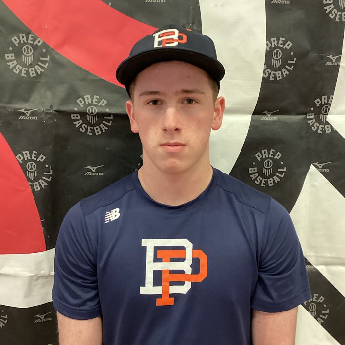 Ben Samuels: RHP/OF, (2027) The Roxbury Latin School, MA. 5-foot-10, 175-pound athletic projectable build. Athletic and projectable in the box, the right-handed hitter recorded an exit velocity of 87 mph. (69.2 mph bat speed average). (22.1 mph hand speed average). Started in a balanced wide stance with a controlled wrapping load, then used a small stride. Bat speed was developing, used an uphill loose swing plane and good extension on his finish. During his round he produced loud contact and found multiple barrels. Gap to gap aggressive approach. Projectable athletic in the outfield, his best throws to the infield topped out at 83 mph; had a natural clean exchange, athletic developing footwork, and developing soft hands. Fields the ball out front, movements laterally were athletic developing. From a high ¾ slot, showed consistent accuracy to the bag with a quick arm action. During the event, clocked a 60 time of 7.25. Projectable on the mound, used a high ¾ arm angle and a loose consistent arm action while showing above average arm speed. Feel type pitcher who uses some effort. In line shoulders and a consistent balance point. Lands closed with a falling off finish. Produced a fastball that came in at 79-80 mph; had control arm side around the zone and running action. (Max spin 1995; Avg 1921). Shows glove side around the zone command and slurvey deceiving action on his slider (65-66). (Max spin ; Avg ).