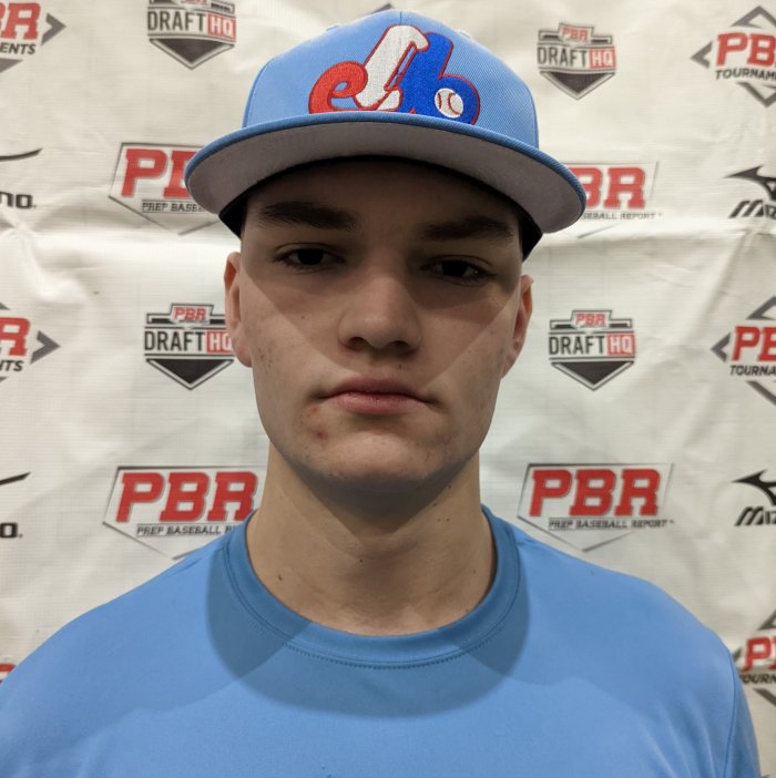 5-foot-11, 150-pound right-handed hitting catcher. He put on an impressive display at the event as the skill set is advanced behind the dish. He threw 76 mph during the defensive portion as the feet and transfer are ultra quick. The bat has a tee exit velocity of 82 mph. The setup is athletic and the front foot is open to start. The front foot closes down as the ball approaches the hitting zone. The hands work free and simple to the ball. He is a good looking prospect.