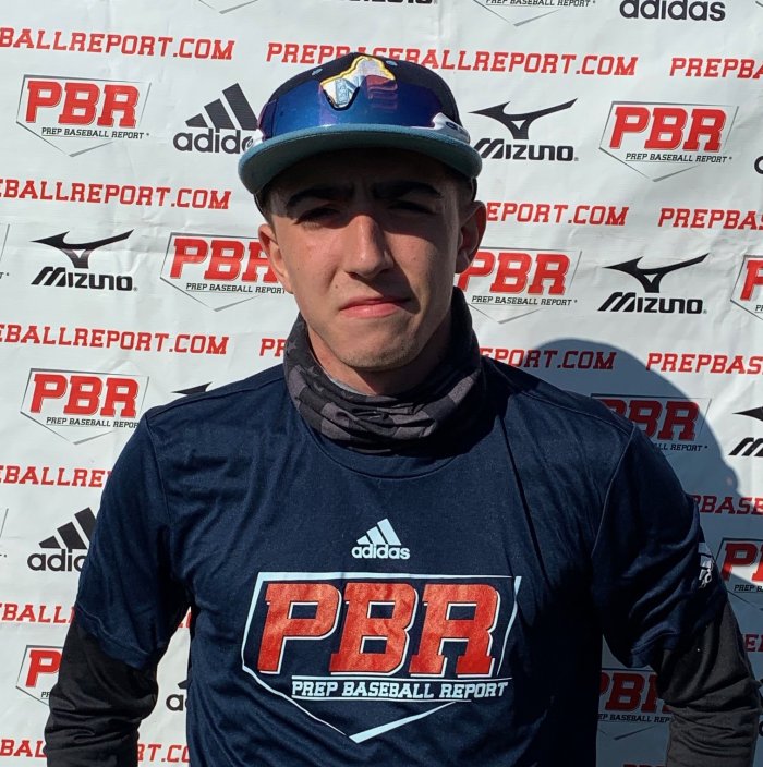 5-foot-10, 150-pound right-handed hitting infielder. Ran a 4.53 down the line on his dig to first base. The glove is solid in the field, keep the feet active throughout the process is important. The arm works freely, needs to continue to work on developing arm strength. Threw 76 mph across the diamond. The bat has a tee exit velocity of 87 mph. The setup is even in base, front foot steps into the swing. The path is flat to contact and the hands work freely to the ball. Solid skill set and he is trending up as he continues to get better.
