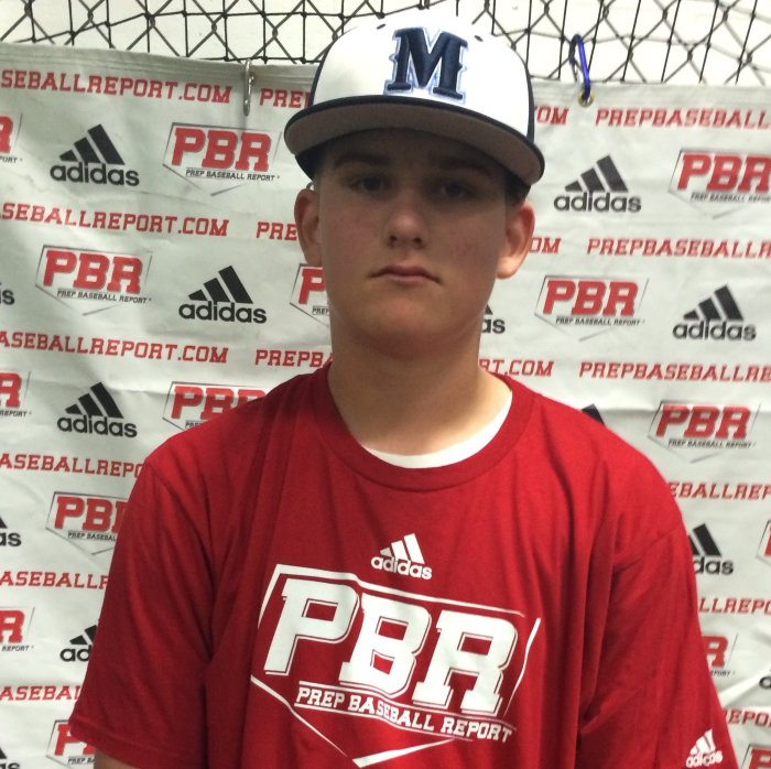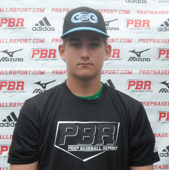 6-foot-5, 225-pound right-handed pitcher. Showed very well at the event, as this is the best we have seen him. The fastball sat 85-87 mph, downhill at times. The spin pitch is 69-71 mph, wrapped on the backside at times, needs more fastball hand speed to it. The changeup has always been solid, sitting 81-83 mph. The delivery is online with the feet and above 3/4 in slot. The lift is athletic, coil at the top and he drives the backside to the plate. He showed a small amount of head movement and recoil at release. The frame is big and durable. He definitely has some things to like,not too mention he is big and the arm works.