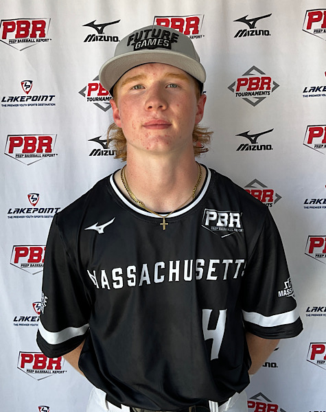 Jack Murray: SS/OF, (2026) Noble and Greenough, MA. 5-foot-9, 162-pound lean athletic build. Above average and projectable at the plate, Murray had an exit velocity of 88 mph. (64.4 mph bat speed average). (22.5 mph hand speed average). Starts in a balanced wide stance with a controlled load, then uses a small stride. Bat speed is quick, shows a flat simple swing plane and good extension on his finish. Found multiple barrels with loud contact. Gap to gap aggressive approach. Above average and athletic in the infield, his position velocity was registered at 80 mph; has soft twitchy hands, athletic consistent feet, and a natural exchange. Laterally, movements were athletic and fielded the ball out front. Used a loose arm action with a high ¾ slot while showing consistent accuracy to the bag.