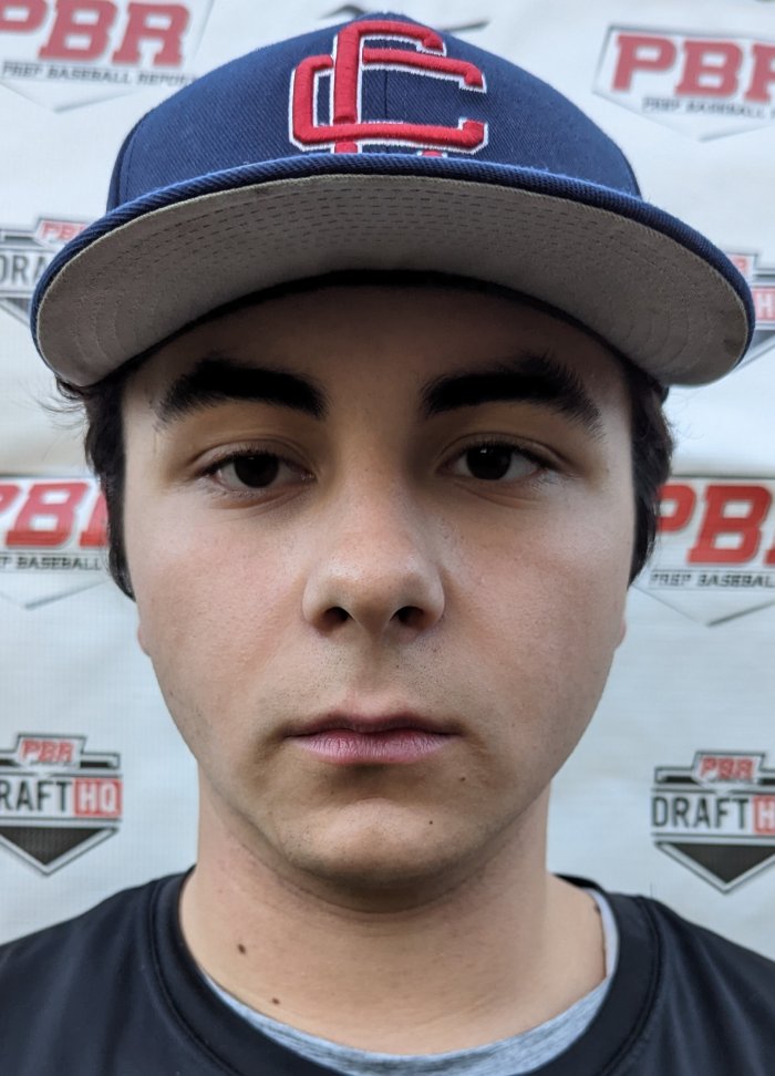 Jaiden LeDuc: 1B/RHP, (2024) Central Catholic, MA. 6-foot-1, 215-pound mature sturdy build. Above average at the plate, Leduc was ranked 3rd with an exit velocity of 93 mph. (67.97 mph bat speed average). (20.30 mph hand speed average). Started in a balanced open stance with a small load, then used a closed stride. Bat speed is above average, displays a long loose swing plane and good extension on his finish. He barreled up lots of balls with loud contact. Aggressive approach. Capable in the infield, displayed a velocity of 64 mph; had developing soft hands, developing footwork, and a clean exchange. Fields the ball out front, movements laterally were developing. Showed a loose arm action with a high ¾ slot. Recorded a time of 7.97 in the 60-yard dash. Projectable on the mound, had a loose arm action and a high ¾ arm angle with developing arm speed. Feel type pitcher and showed some effort. He has in line shoulders with a consistent balance point. Lands closed with a clean finish. Produced a fastball that came in at 69-70 mph; showed control arm side around the zone and running action. (Max spin 1767; Avg 1661). Throws a 11/5 curveball (56-57) that has sweeping action and glove side control. (Max spin 1775; Avg 1733). Had arm side command and gradual fading action on his flat changeup (61-62).