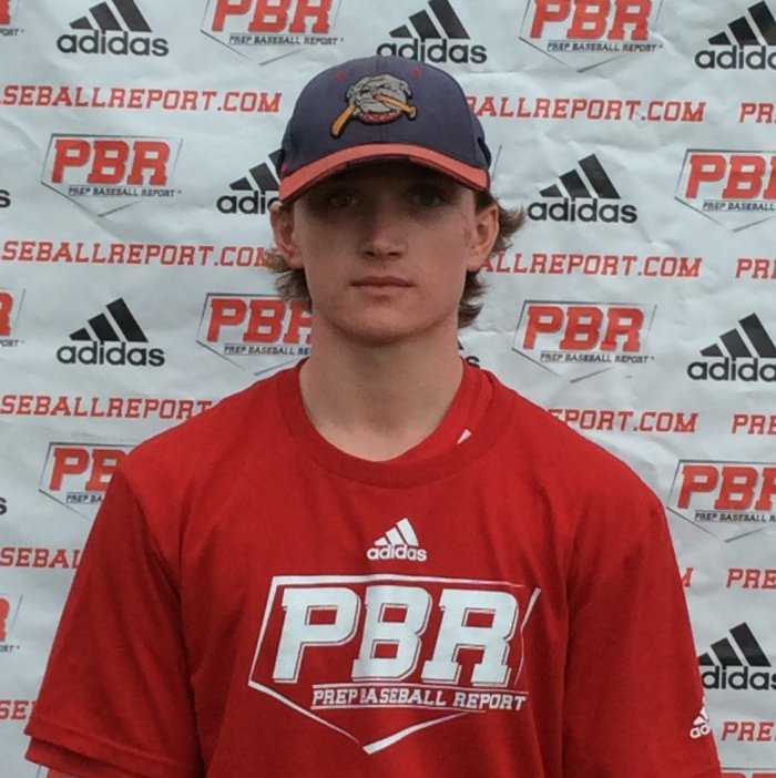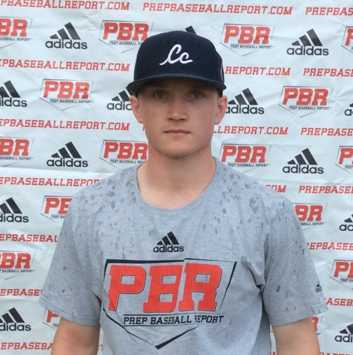 5-foot-7, 160-pound left-handed hitting catcher and outfielder. Ran a 7.46 sixty on the laser at the event. The frame is starting to fill out and he has improved his physical strength. Threw 74 mph from the outfield as he moved to and through the ball appropriately. The athleticsm is solid enough for him to play a corner outfield position. Threw 65 mph from behind the dish during the workout. The feet need to continue to improve during the transfer. The receiving has improved as well, as he continues to soften the glove. Pop time of 2.10. The bat has a tee exit velocity of 84 mph. The set up is even in base, low hand start. The path is slightly up and over through the hitting zone, needs to be flattened out. The bottom half is under control throughout and the hands work freely with the barrel