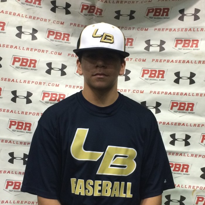 5-foot-11, 175-pound left-handed hitting corner infielder and right-handed pitcher. On the mound, the fastball touched 77 mph with arm side run and action to it. The spin pitch is 65-67 mph with a very good shape to it. The changeup shows the correct spin to it, sits at 67-68 mph. The delivery is online with his feet, and comes at the hitter slightly above ¾ . The tracking of the front shoulder is excellent and it puts his feet on time with the ball hand. The ability to pound the zone is there and he has feet for pitching. Positionally, threw 72 mph across the diamond from first base. The feet and glove are above average at first base. He has a good handle on playing first base. Ran a 4.9 down the line on his dig to first base. The bat has a tee exit velocity of 83 mph. Starts the swing with his feet even, front foot slightly. The path is simple and he gets the barrel there. Making sure to stay in his legs is imperative as he gets to his front foot at times. Uses his hands very well and they work nicely.
