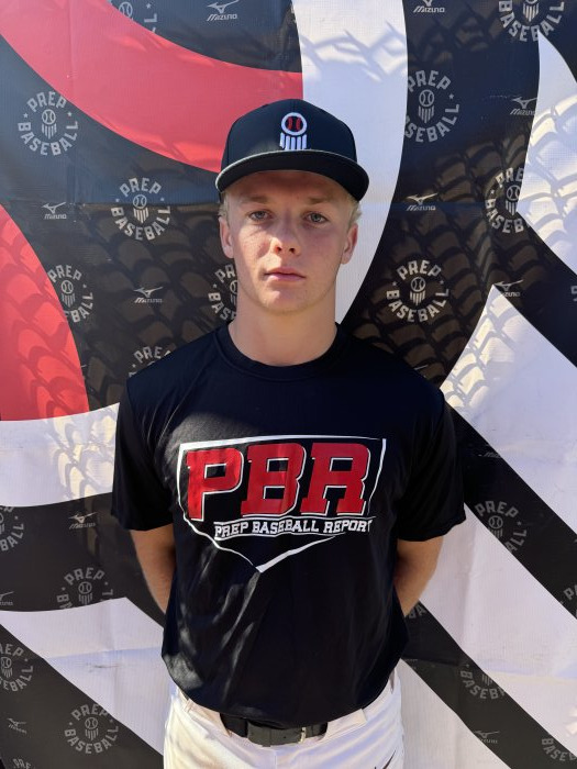 5-foot-10, 180-pound left-handed hitting outfielder and first baseman. He put together an excellent workout. He ran a 6.76 sixty, with room to improve that as he matures. The approach in the outfield is athletic and done with confidence. The arm is ultra quick, throwing 90 mph with carry. The glove and feet are reliable around the bag at first. The arm is quick, throwing 88 mph in the infield as well. The bat has an exit velocity of 96 mph. The setup is even in base and the front foot gains minimal distance as the barrel makes its way into the hitting zone. The bat path is slightly uphill. The bat to ball skill was excellent in the game as he hammered the ball around the yard.